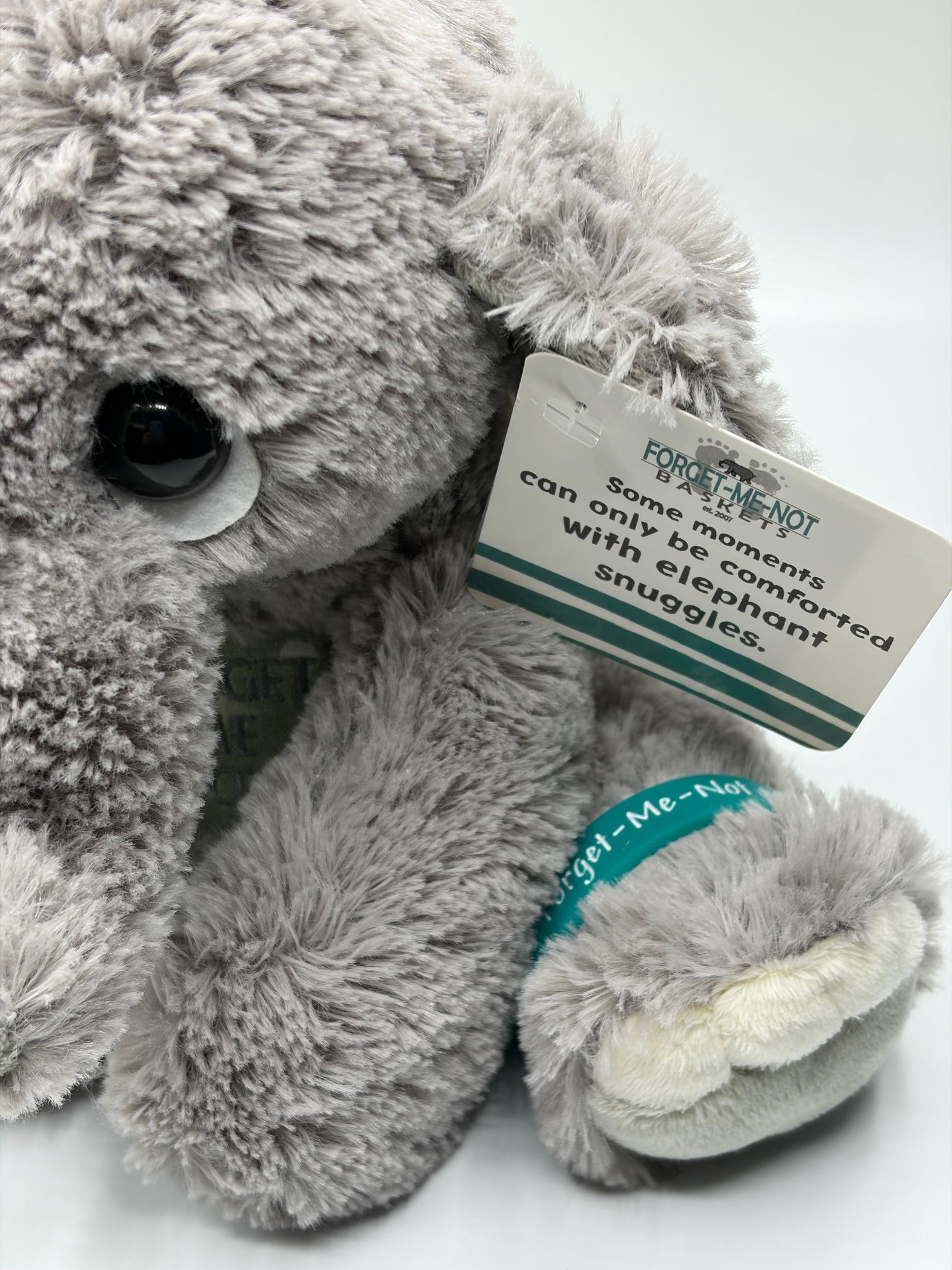 Our sibling elephant, we lovingly call "Willow", is a soft and cuddly stuffed elephant that has a hand stitched patch on her belly with the words Forget-Me-Not. She also comes with a youth size Forget-Me-Not wristband. This little elephant has been providing the best hugs to siblings and parents for years and we can't wait to share her with you.